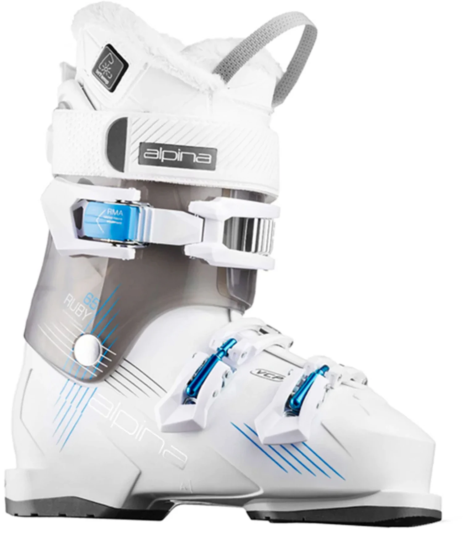 The Ruby 65 Heat from Alpina is a great way for the beginner to intermediate skier comfortable and warm on the mountain as they learn the ins and outs of skiing. Alpina has their InTemp integrated heating system that uses heating coils that wrap the foot on the inside of the liner and three temperature settings will keep your feet comfortable for hours on the slopes. A Ratchet Cuff Buckle and VCR (Volume Control Regulator) make it very simple for you to tweak and adjust the fit around your calf. The Women’s Specific Fit is designed for the narrower heel shape and more taper from the heel and forefoot. The VCP (Volume Control Plate) gives you the ability to add volume to the boot by swapping the right and left bootboards for a perfect fit. If you want a beginner boot that will help keep you comfortable and warm on the mountain, the Alpina Ruby 65 Heat is the perfect option for you.