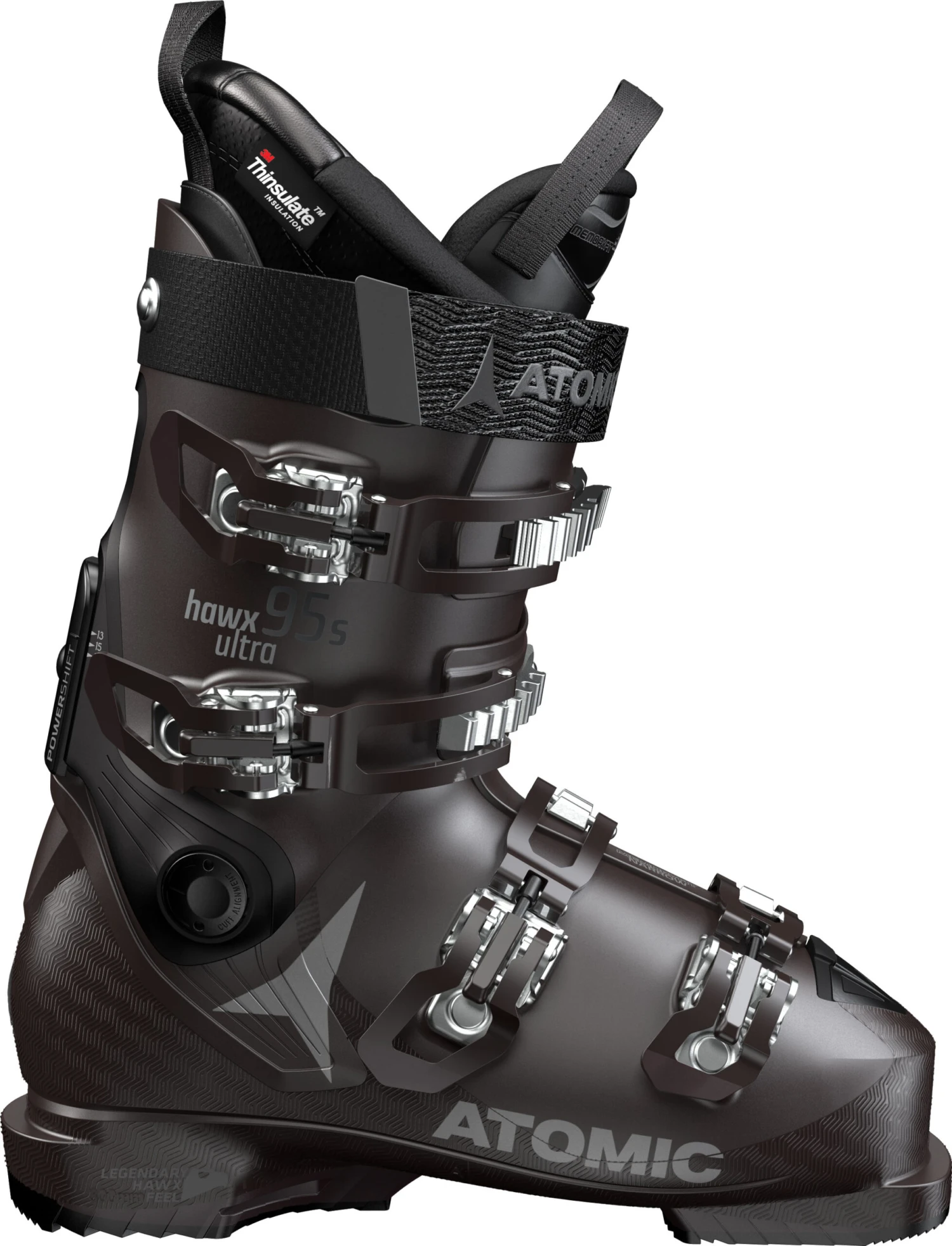 Atomic Hawx Ultra 95 S W offers slightly less stiffness than the 115 S W – ideal for intermediate female all-mountain skiers. It’s one of our top Hawx Ultra boots for women, a range with the Legendary Hawx Feel now in a narrow 98mm last. Memory Fit offers perfect personal fit in minutes, plus 3M™ Thinsulate™ Insulation keeps your feet warm in all conditions. Like all of our women’s ski boots, it has a more tulip-shaped cuff and liner for greater comfort. It’s also light, yet powerful: Prolite – revolutionary lightweight construction, with stronger reinforcement where it counts – cuts weight by 25%. This is a boot that makes skiers happy every day they’re on the snow.