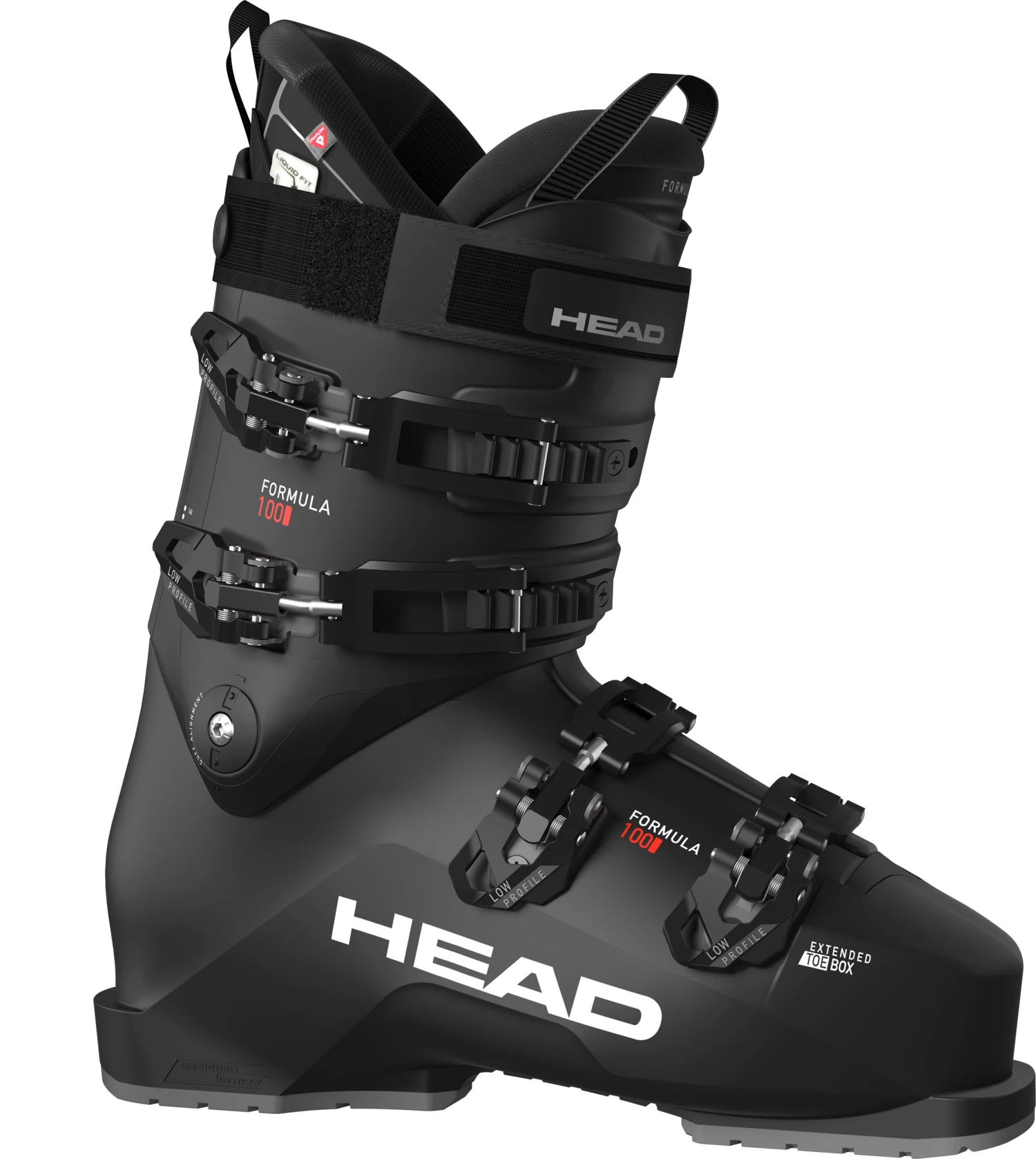 The Formula 100 high performance and all-day comfort means that skiers can reduce fatigue, stay warmer and enjoy a precise fit. With vibration-absorbing technology and bootfitter-approved customizable features, the Formula 100 can boost balance thanks to a race stance that allows skiers to be more centered. The 100-mm last and extended toe box offers space and toe articulation, while the shell has an adjustable flex of 100 to 110, with four micro-adjustable, low profile alloy buckles. The 40mm Velcro strap allows for better closure and tighter wrapping of the cuff for the best possible fit.