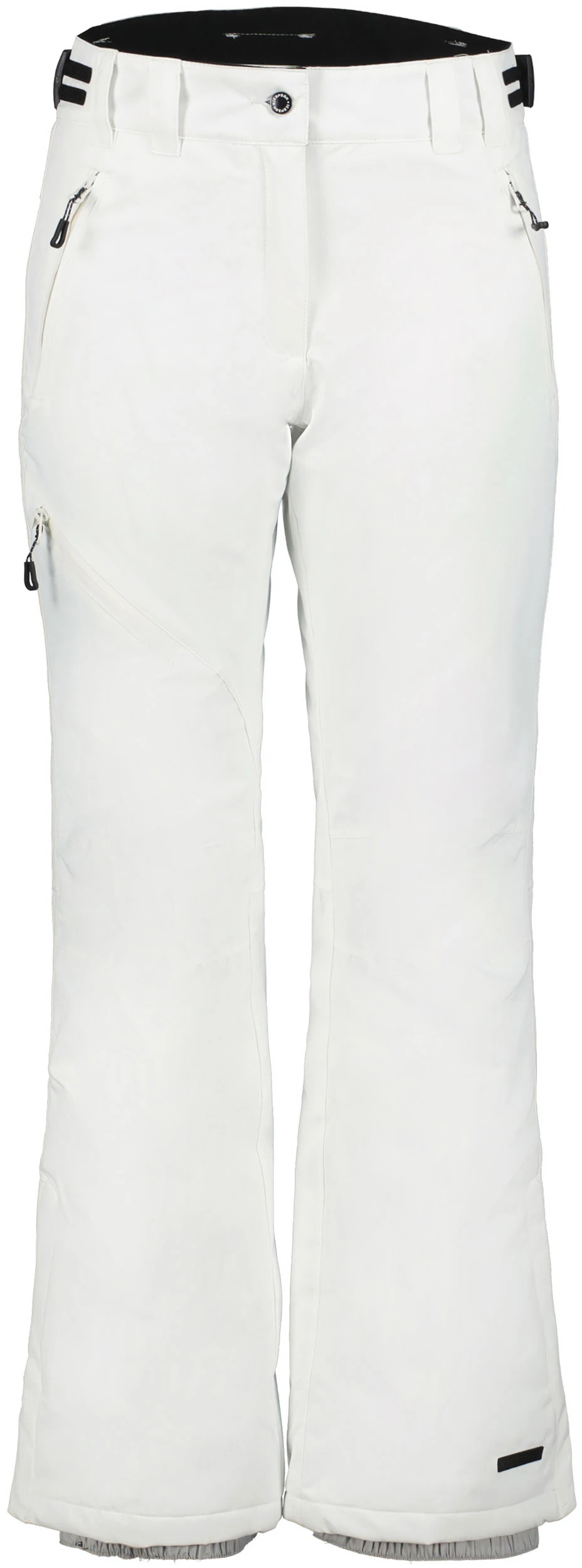 The Icepeak Curlew trousers are designed primarily for skiing, but they can also handle many other kinds of outdoor winter activities. The fabric, with its waterproof and breathable membrane, and the taped seams keep moisture on the outside, and a light padding provides just the right amount of warmth. The waist is adjustable and slightly higher on the back to better protect the lower back, and there is a soft lining on the inside of the waistband. The trousers have two regular zipped pockets and one zipped thigh pocket on the front. The legs are shaped at the knees, and the leg openings have snow locks to prevent snow from getting in.