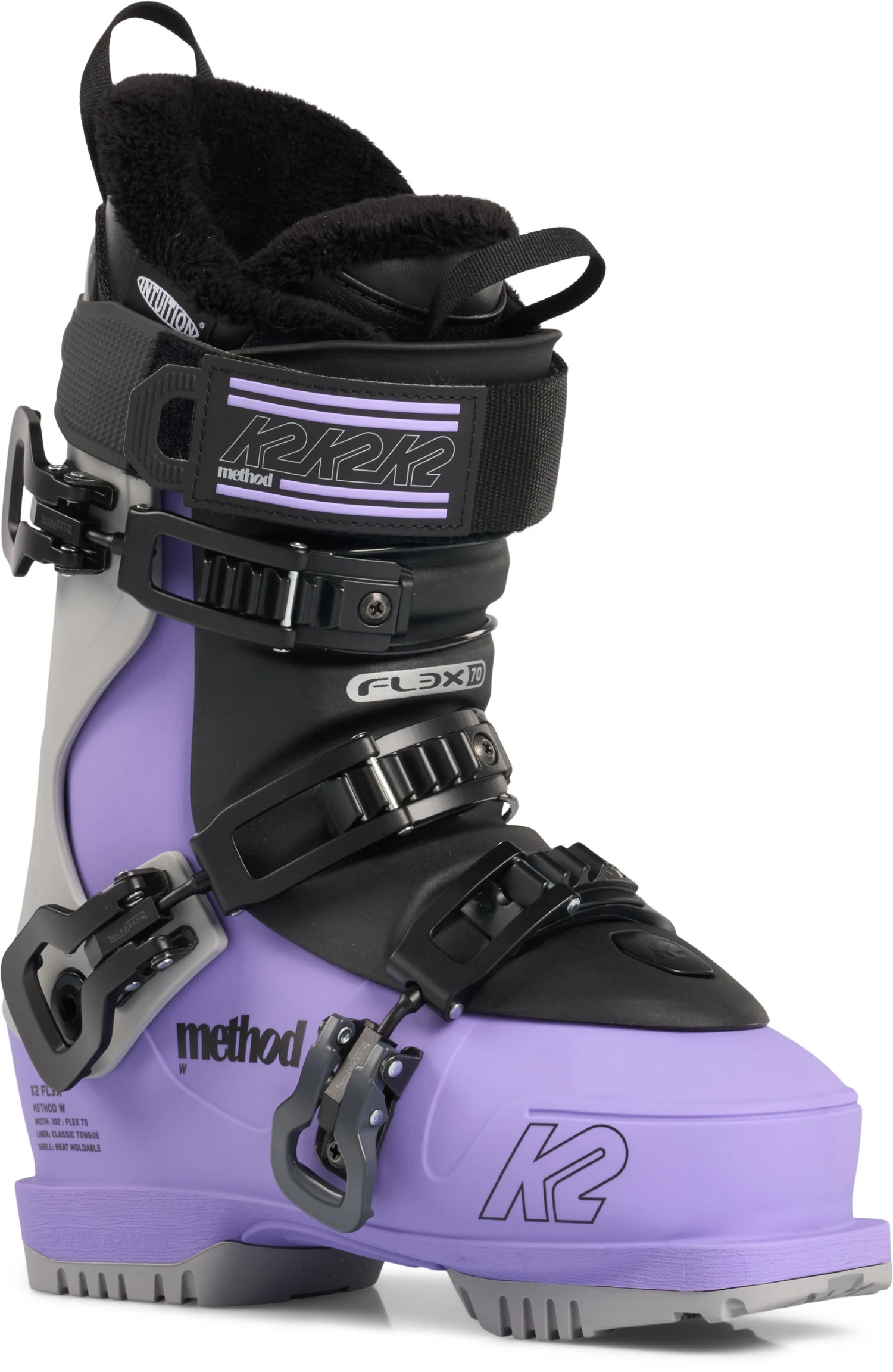 Featuring our Fully Heat Moldable 102mm last Method Shell, Easy Entry Intuition Tongue Liner, and a park-optimized 70 flex tongue.