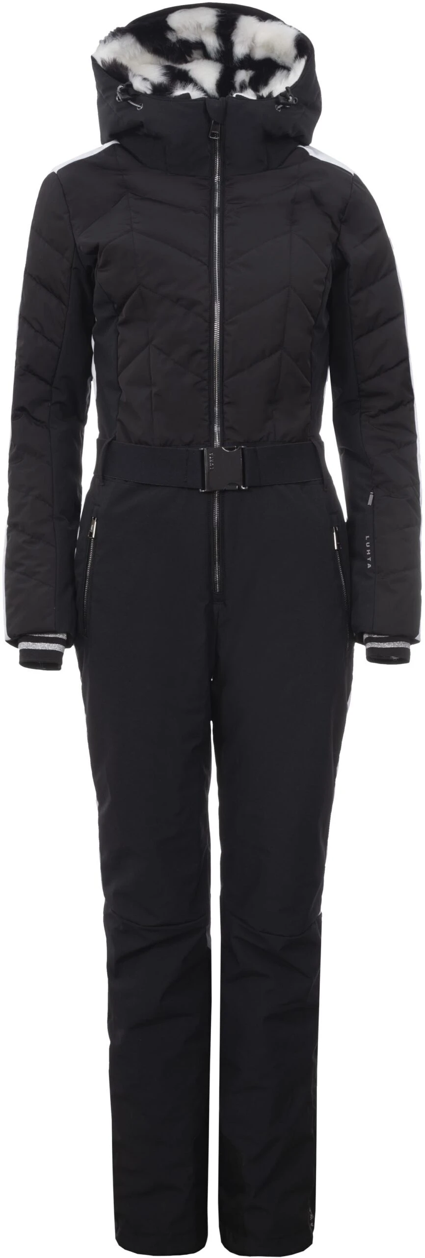 Women’s elegant slim-fit ski overall. The retro-spirited Luhta Ounastunturi is a real head-turner that looks good both on the piste and at the après-ski. The slim cut and wide belt create a flattering silhouette, but the overall won’t feel tight or hinder movement, as apart from the quilted sections, it is made from a stretchy fabric with recycled polyester. The overall has a warm padding and the outer fabric is wind and waterproof, meaning that in this instance you won’t have to suffer for beauty. In the leg bottoms, there are snow locks and zippers, which help with dressing and undressing, and the sleeves feature stretchy inner cuffs.