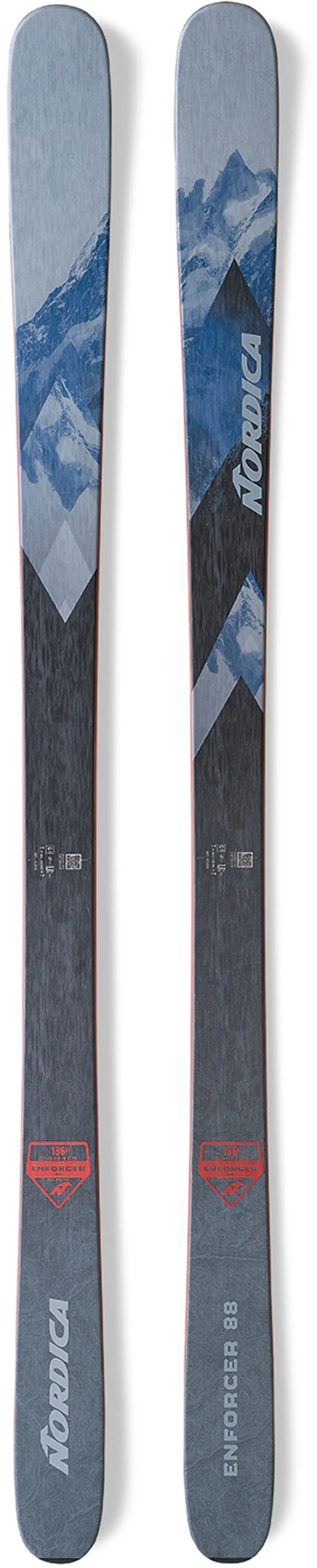 Powerful and precise, the Enforcer 88 yearns to turn. Skiers who spend most of their time on trails love its stability and penchant for speed. Armed with a narrower waist, it pairs a full wood core with two sheets of metal and carbon stringers that run the length of the ski. In addition to dampening vibrations for an especially smooth ride, this creates an energetic ski that’s exceptionally responsive and quick edge-to-edge. Its early rise tip and slight tail rocker enhances versatility, offering a nimble attitude and the ability to readily absorb bumps. And although it’s the newest addition to the Enforcer collection, this ski already has a reputation for boosting confidence, performance, and fun. Carve your signature all over the mountain with the Enforcer 88.