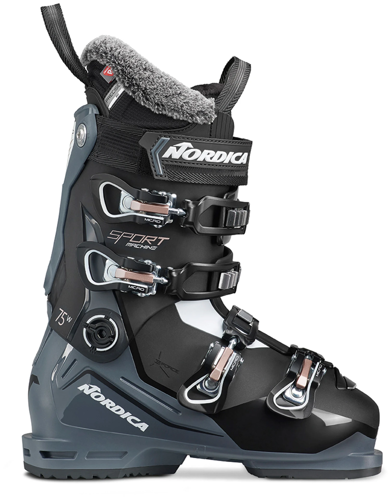 By boosting confidence and control, Nordica’s Sportmachine 3 75 W aims to help you become a better skier. Reimagined to offer even greater control, it features a wider yet low profile 102 mm fit and a softer shell that’s especially forgiving. Its 3 Force Construction showcases a new spine and cuff design that enhances efficiency by maximizing the transmission of energy to the ski. To create a more neutral stance that improves balance and reduces fatigue, the boot’s cuff can be fine-tuned to cradle the contours of your calf. And for a truly personal fit, its shell and liner can readily be customized. With an emphasis on progression, Nordica’s Sportmachine 3 75 W lets you forget about your feet and enjoy the day in comfort.