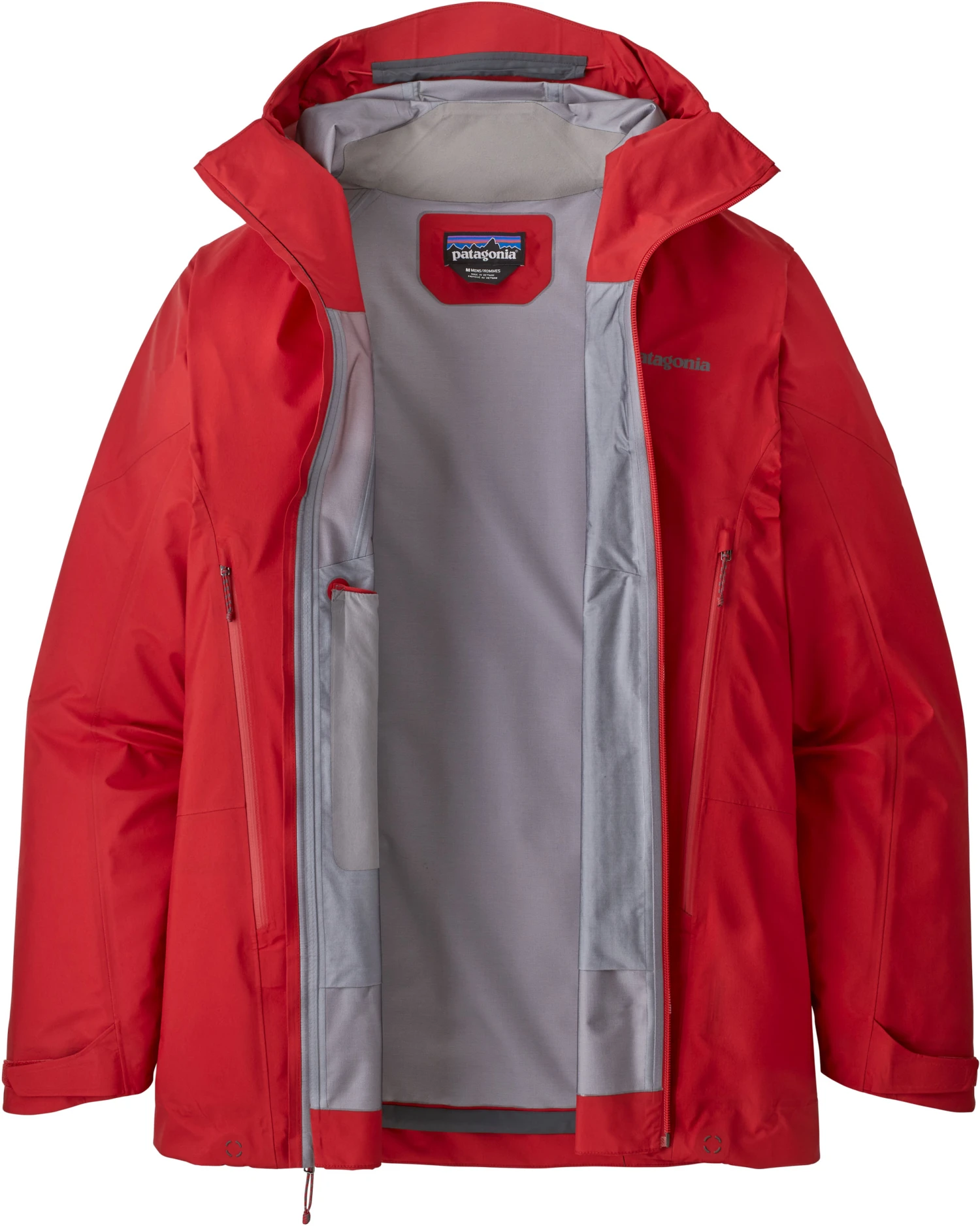 Two high handwarmer pockets with watertight zippers stay clear of a harness or pack waistbelt; one exterior welted, left-chest pocket with a DWR (durable water repellent)-treated zipper; interior stretch catch-all pocket